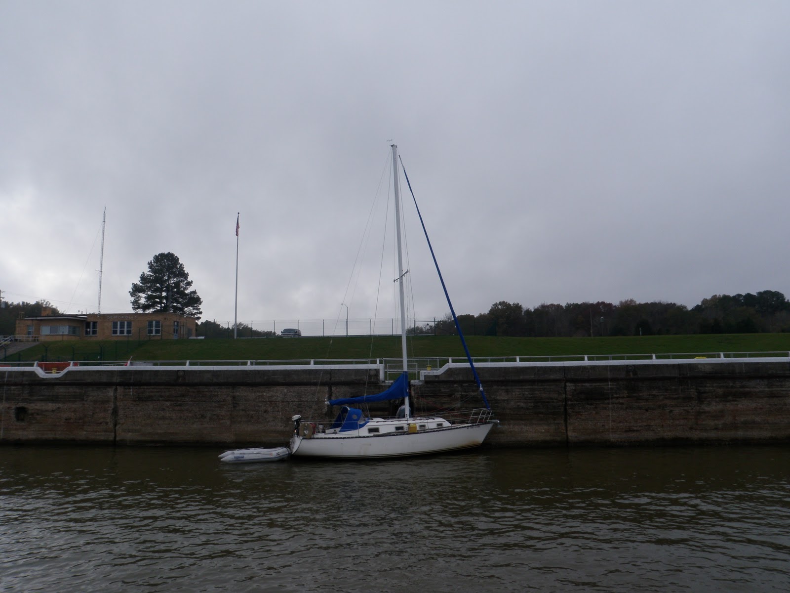 Our day started with some fog. We left the Demopolis Yacht Basin by 8:00am and had an hour and a half wait for our turn at the Demopolis Lock and Dam. We dropped our hook in Foscue Creek and I cooked up some pumpkin and banana loaf bread to help pass the time. By the time it was our turn there were 4 other pleasure boats in the lock with us.